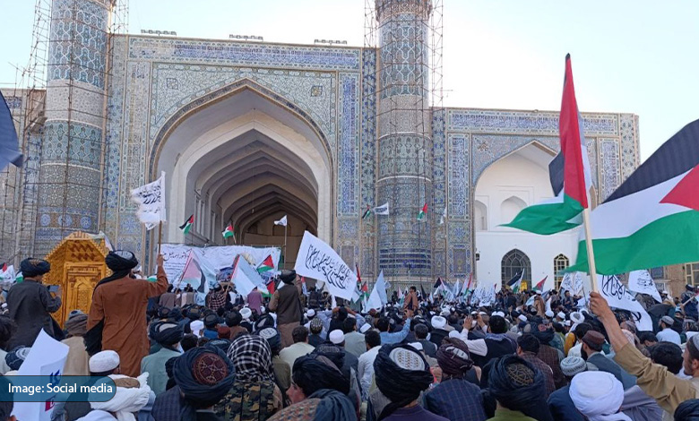 در پی نشر اعلامیه و فرا خوان رسمی از طرف دفتر والی طالبان در هرات مبنی بر اعلام حمایت از مردم فلسطین و محکومیت قتل بیشتر از سی هزار نفر در فلسطین، برای اولین بار ازجانب والی هرات در مسجد جامع هرات گرد همایی و بعداً راه پیمایی صورت گرفت. این راه پیمایی با اشتراک تعدادی از مردم و طالبان در شهر هرات بر گزار گردید. اشتراک کنندگان در محفل شعار های «مرگ بر اسرائیل و مرگ بر امریکا» را سر داده از موقف مردم فلسطین اعلام حمایت نمودند. آنها همچنان ترور اسماعیل هنیه رهبر گروه حماس را توسط اسرائیل جنایت نابخشودنی خواندند و بشدت محکوم کردند.